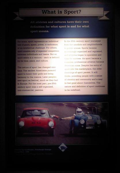 本田技研工業が今シーズンを最後にF1世界選手権から撤退するというニュース、あるいは、F1がさらに使用リソース・技術を削減していくという記事を見て(F1 ルール変遷)、ふと、車両技術開発者やドライバーやメンテナーや、そんな多数の人からなるチームが競い合うF1というスポーツは、どういうスポーツなのだろう、と思った。そして、自動車レースの写真とともにスポーツ博物館の入り口に掲げられていた文章を思い出した。