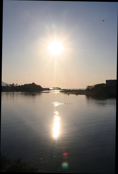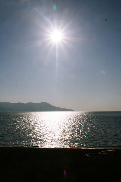 海面に太陽が写っているようなのだが、海面に写った太陽はまるで「道」のように水平線から足元まで続いている。よく考えてみると、これは少し不思議に思える。海面に反射した、つまり、海面という鏡に映った太陽の姿がなぜ「上下反転した太陽」でなく「輝く道」のように見えるのだろうか。