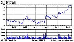 さて、このグラフのようにApple株は急上昇中なわけで、問題の「MicrosoftはApple株でいくら儲けているか?」であるが、97/08/08当時の13ドル前後の株価で一億五千万ドル分のApple株を買っていたとしたら、現在は80ドルくらいであるから、およそ6倍。すなわち、一億五千万ドルから九億ドルになっていることになる。うーん、たまらん。800億円近い差が有る(線形的な発想)。