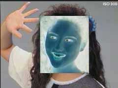 この画像を見る階調は確かに反転しているのであるが、色が明らかにおかしい。オリジナル画像では赤かったハズの唇が青いのである。それどころか、顔全体が青いのである。真っ青だ。明るさは正しそうなのであるが、色合いは絶対に何かが狂っている。