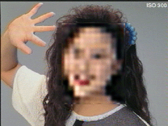 なるほど、「反転画像」に関しては「くりくり小僧」は確かにちゃんと画像を復元できることが判った。しかし、しかしである。反転モザイク処理をかけたビデオなんてそうそうあるわけがない。いや、そんなに自信を持っていうと何やら変な疑いをかけられそうであるが、多分そうだろう。ほとんどは、次に示すモザイク(狭義の)処理だと思う。それをキレイに復元できなければ、「モザイク消し器」と名乗る資格はない。そうは思わないだろうか?百歩譲っても、「反転消し器」と言うべきではないだろうか?そこで、狭義のモザイク画像に対してこの「くりくり小僧」が威力を発揮することができるかどうかを、次に調べてみた。