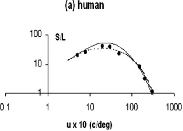 人の視覚が濃淡模様を識別する特性を考えると、約1メートル離れた9ミリメートルピッチつまり角度約1度の濃淡模様は、数十分の1程度でも識別することができる。