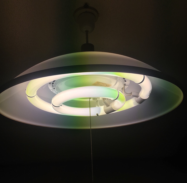 一番身近にある各種センサを備えたコンピュータ、いわゆるひとつの「スマホ」を使って簡単に特殊撮影をしたり・色々遊んぶツールを作っています。そのひとつとして、スマホを使った「(光の波長ごとのイメージを取得する)分光撮影カメラ」があると一体どんなことができるかを確かめてみたくなり…試しにスマホ分光カメラを作って蛍光灯を撮影してみました。撮影し蛍光灯は、右上に貼り付けたいたって普通の蛍光灯です。