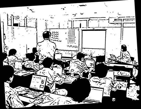 ラプラス方程式を差分化して、エクセルで静電界計算をしているところ。複合誘電体で「電位と誘電率セルが"セル半分"だけずれている」ように設定して計算させる辺りから、手が止まる受講生が続出し、「エクセル」がキライになるティーチング・アシスタントも続出する?