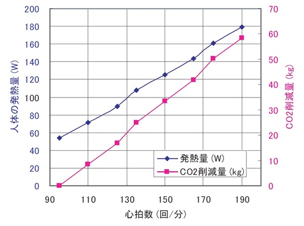 合の計算です)。恋をして、心拍数が速くなると、発電分のCO2 は削減できていることがわかります。