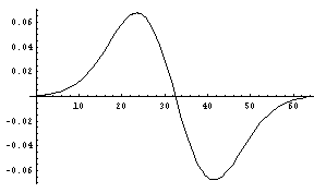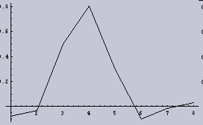 なお、フーリエ変換では基底関数としてSinが用いられるが、Wavelet変換では基底関数としていろいろな関数を使うことができる。今回はDaubechiesの4次のものを用いている。下がその形である。