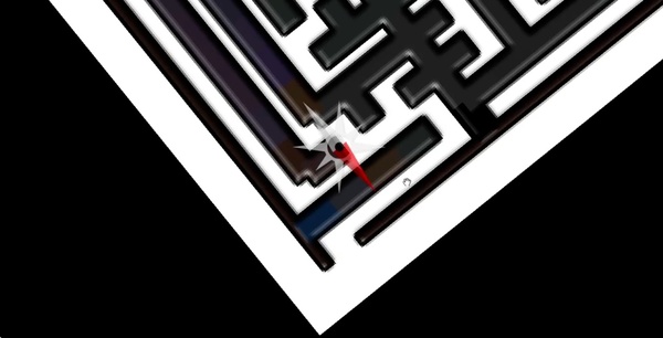 AKB48 24thシングル選抜じゃんけん大会で篠田麻里子が優勝したので、記念に「巨大なAKB48 篠田麻里子 迷路」を作ってみました。遙か遠くから眺めるとニッコリ微笑む巨大な篠田麻里子に見えるけれど(篠田麻里子が巨大だと言っているわけではありません)、近づいて眺めてみるとなんとビックリ、それは実は限りなく巨大な迷路だった!!という「巨大なAKB48 篠田麻里子 迷路」です(「巨大なAKB48 篠田麻里子 迷路」PDF 5.1MB)。その巨大迷路が「迷路」であることがわかるように、右目辺りを拡大してみたのが右の図です。このあまりにも巨大迷路、拡大して眺めてみないとわかりませんが、右上の角に「迷路の入り口」があり、左下角に「出口」があります。