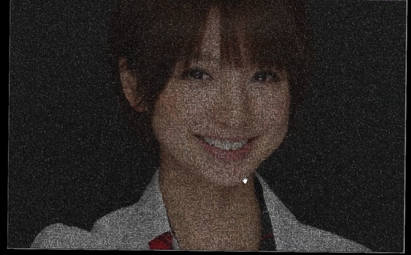 「巨大なAKB48 篠田麻里子 迷路」を作ってみたで作ったのは「迷路の壁の厚みで濃淡(絵)を表現する巨大迷路」でした。しかし、白黒だけではつまらない…というわけで、今回は「カラフルに色を塗った壁」で仕切られた「巨大なAKB48 篠田麻里子 カラフル迷路」を作ってみました。