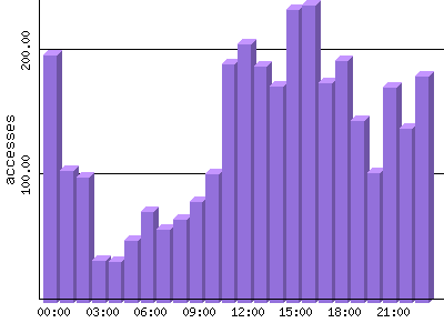 そして、早朝5時過ぎからアクセス数が増えていくことがわかる。5時過ぎくらいから活動を始める人も多いようだ。そして、昼の12時辺りにひとつピークがある。これは、企業の昼休み時間にアクセスしている人達によるものだろう。次に15時位に大きなピークがある。これは、何だろうか?まさか、おやつの時間ではあるまい。企業ユーザーが一服しているのだろうか?小さい18時辺りのピークも、企業ユーザーの就業時間の終わりを示すものと思われる。