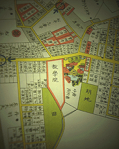 地図を拡大したものを示してみる。「教学院」が探している目青不動である。