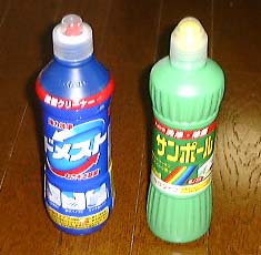 そこで、それを確認すべく私はトイレにかけこみ、化学兵器を持ち出した。それがこれ、酸性溶液サンポールとアルカリ性溶液ドメストである。