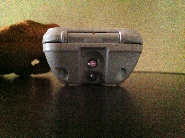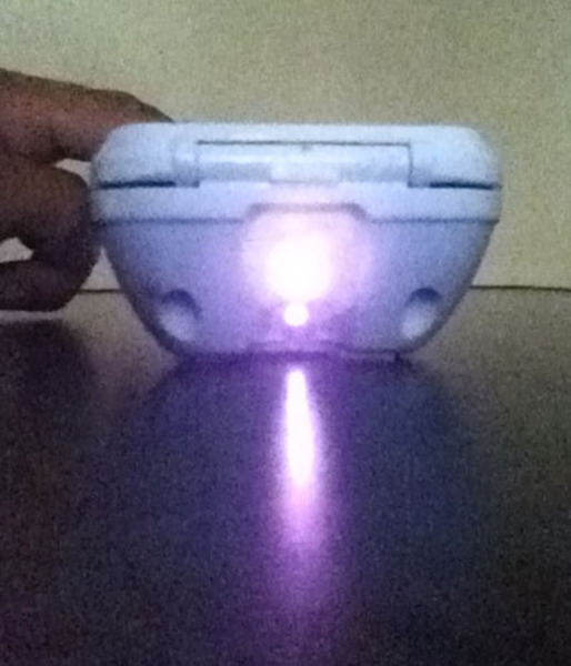 しかし、実は、iPhone 4を「赤外線カメラ」にする裏技テクニックがあります。…というのも、「赤外線が映らない」というのは、iPhone 4のリアカメラだけで、フロントカメラは、赤外線にバッチリ感度がある(赤外線カットフィルタが入っていない)からです。だから、iPhone 4のフロントカメラで赤外線リモコンを撮影してみると、赤外線LEDの光を眩しいくらいに撮影することができます。それが下の写真です。