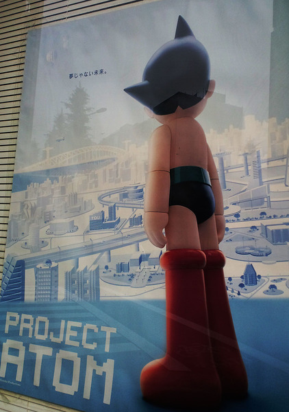 ポスターの「夢じゃない未来」と短く書かれた言葉を眺めながら、設定上2003年に生まれたはずの鉄腕アトムは2009年からすれば過去に立っているのだろうか?などと考えながら、ショーケースの中に張られたポスターの前でしばらく佇んでしまいました。
