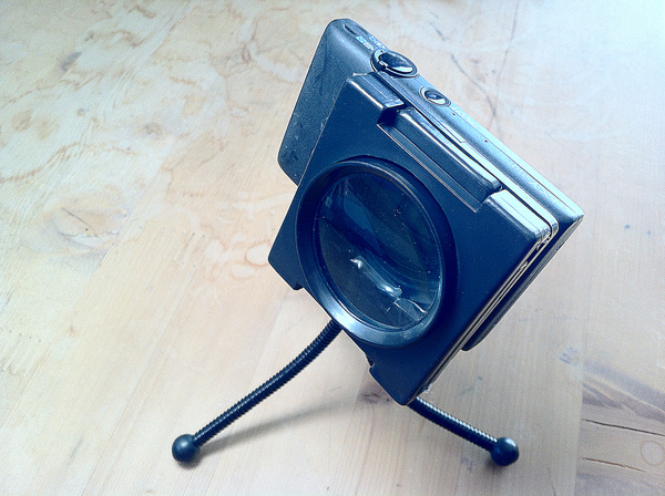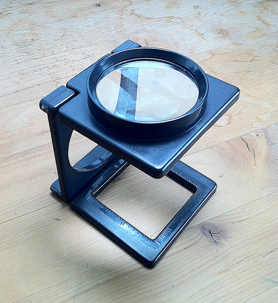 (老眼が入ってきている)人に優しくないカメラしか売っていない…と困り・嘆いている方がいれば、100円玉(と消費税分の5円玉)を握りしめて100円ショップに走り、折りたたみルーペを買って、こんな具合で『100円で作る「コンパクトデジカメ用背面ルーペ・ファインダ」』を作ってみるのはいかがでしょうか。もしかしたら、あなた専用の「人(あなた)に優しい道具」を手に入れることができるかもしれません。