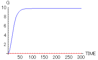 ここまでくると、抵抗のない場合(赤)と抵抗のある場合(青)では全然違う軌跡になっている。抵抗のない場合(赤)では放物線そのものであるが、抵抗のある場合(青)では一定の速度になっている。