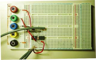 そこで、早速この回路図を元に組み立ててみたのがこの「Heartbeat1000」だ。安定性なんか無視しまくりのブレッドボード使用でそのくせGainは1000倍に変更という、無意味なエアロパーツを付けたヤンキー車のような仕様である。製作時間は本体が15分、さらに電極部分が30分というお手軽装置だ。