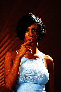 その「巨乳ビジョン・シンドローム」の症状は、下の二枚の写真を見てみると判りやすいのではないか、と思う。まず、左は「規則正しい模様のある生地でできた服」を着ている女性である。そして、右の写真はそんな「規則正しい模様のある服」を眺めたときに、意図せずしてモアレが発生してしまった様子を示している。ほとんど同じ二枚の写真ではあるが、よ~く眺めてみれば服の部分にモアレが発生してしまっている様子がわかるハズだ。しかも、ある特定の一部分であることも判るだろう。