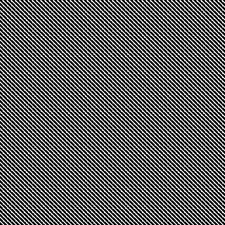 それは、例えばこんな縞模様を目にするときだ。片目をつぶって、もう片方の目だけでこの下の縞模様を眺めてみよう。すると、色の付いていないハズの白黒の縞模様の上に、うっすらと色の付いた縞模様が重なって見えてくるハズである。もしも、最初のうち判りにくいようであれば、片目をつぶったまま見る距離を変えてみれば判りやすいかもしれない。縞模様がウネウネと動く様子が見えると思う。