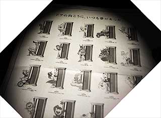 以前、「iMacはドラえもんの夢を見るか?-さようなら、ドラえもん -(1999.02.03)」 の時にドラえもんの話を出した。今回もまたまたドラえもんの登場である。私はドラえもんをさほど読んでいたわけではない。しかし、ここまでドラえもんにこだわるのは、高校時代のサミー本田先生の教育の賜物なのかもしれない。今日(1999.03.05)の朝日新聞の朝刊に4面全面を使ってドラえもんの映画の広告が載せられていた。その内の1面を少し加工したものが下の写真である。