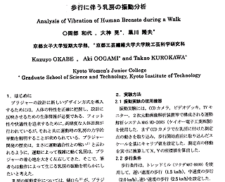 先日、素晴らしい論文(いや違う戦闘報告だ)を見つけた。それは日本人間工学会関西支部大会講演論文集Vol.2000Page. 112-115に掲載されている岡部氏らの「歩行に伴う乳房の振動分析」という報告である。内容は、