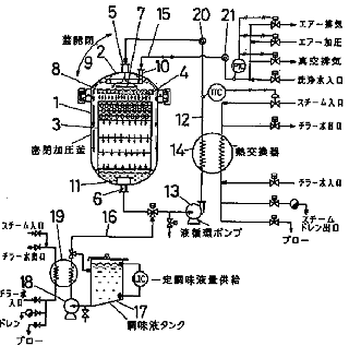 - 加圧排水後調味液タンクより冷却された調味液を供給し、15℃まで冷却し、循環させる。