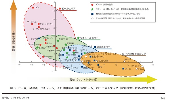 ■電気学会誌の最新号掲載「ビール飲料」の2軸マップ