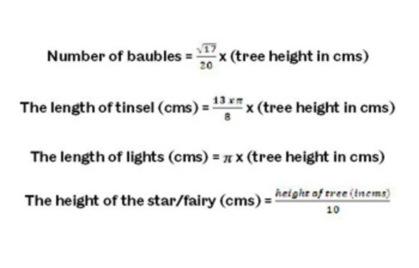 For example, a 180cm (6ft) Christmas tree would need 37 baubles, around 919 cms of tinsel and 565 cms of lights and an 18cm star or angel is required to achieve the perfect look.